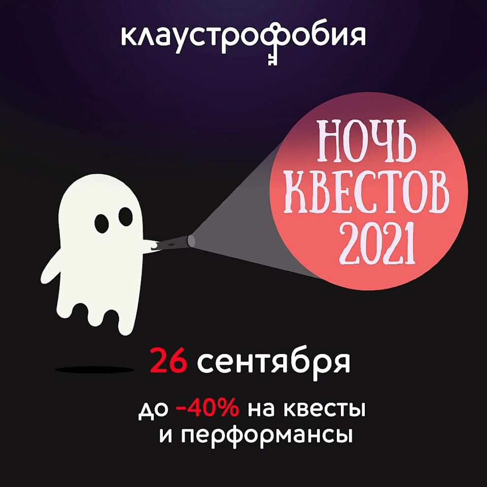 С полуночи до 23.59 26 сентября международная сеть интерактивных развлечений «Клаустрофобия» проведет в Москве акцию Ночь квестов 2021. В ее рамках можно принять участие в лучших играх и перформансах со скидкой до 40%. Детективы, ужасы, приключения, эротические квесты (18+) – вы найдете себе развлечение на любой вкус.