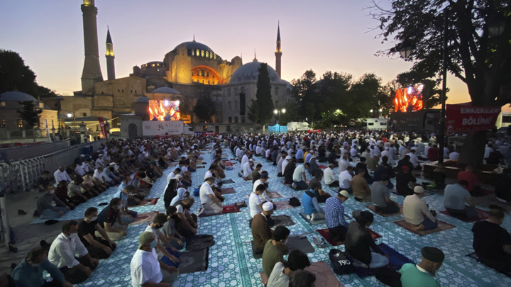 В июле самая популярная достопримечательность Турции, которую ежегодно посещает более 3 млн человек, официально сменила статус. Из музейного объекта собор Святой Софии стал мечетью, где регулярно проходят богослужения.