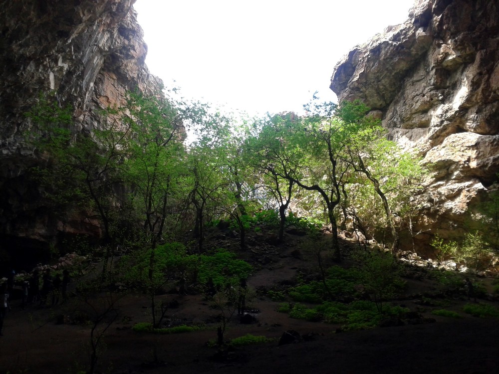 По одной из них, рассказывает нам наш гид, в этой пещере долгие годы жил большой и злой дракон. Он приносил много бед местному населению, пожирал их скот. Когда дракон взлетал, то задевал крыльями часть свода и поэтому она рушилась. Конец его пагубным действиям положил пророк Сулейман. Он посадил чудище на цепь. Гид указывает нам место, где спал этот дракон - самый центр пещеры, куда попадают солнечные лучи.