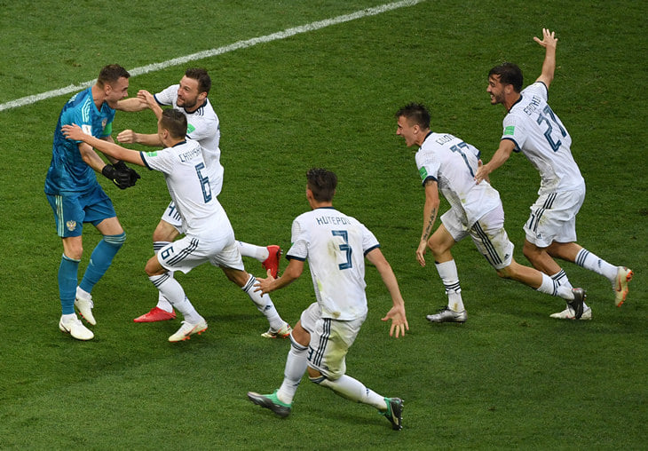 Пятая серия пенальти в карьере Акинфеева привела к пятой победе: похоже, российская сборная знала об этом, ведь ещё до серии камера выхватывала лица улыбавшихся Смолова и Артёма Дзюбы. Вратарь дважды в серии прыгнул вправо и дважды отбил мячи после ударов Коке и Яго Аспаса, причём ногой он отразил послематчевый пенальти впервые в карьере.