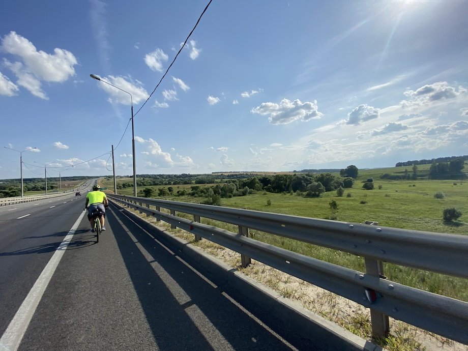 Несколько часов я просто ехал с улыбкой до ушей, эмоции переполняли. И первые полдня, наверное, были замечательные в этом плане. На подъезде к Туле начались горки, когда я уже охренел знатно. Очень тяжело было. То есть мышцы обычно болят на следующий день, а у меня уже в этот вечер все ныло. Когда мы приехали в Тулу, я упал возле памятника на дороге и практически уснул. Первый день был очень тяжёлым. Зато страх пропал.