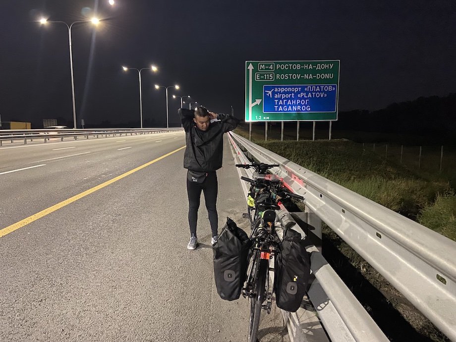 Артём: Там стали в бред впадать и галлюцинации ловить. Когда по трассе едешь, вокруг темнота, ничего не видно, пейзаж не меняется – начинает мерещиться разное. За 20 км до Ростова стали появляться фонари, и сразу как-то легче на душе стало. В такой момент понимаешь, как бы ты ни устал, если сейчас перестать крутить педали, то здесь ты и останешься до утра. А на улице холодно, страшно и ничего нет вокруг.