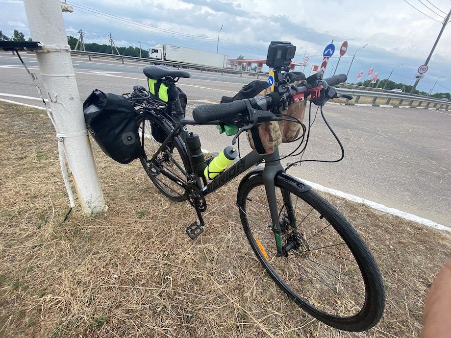 Артём: С февраля этого года я начал подбор всего необходимого. В велосипедах вообще не шарю и не понимал, какой нужен, а их реально много разных. Начал спрашивать у знакомых из спортзала, которые этим увлекаются. Мне подкидывали варианты на выбор. С Азаматом договорились, что бюджет до 50 тыс. рублей. Сначала у нас был план уложиться до 30 тыс. на велосипед, но стало понятно, что этого не хватит. Вариантов было мало, буквально 2-3 модели. В итоге выбрали велосипед для путешествий Merida Speeder GT 90. Очень классный.