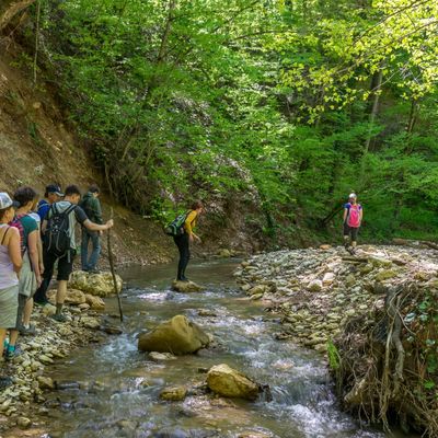 Сразу же начнём набираться впечатлений: пойдём знакомиться с удивительным ущельем Мишоко (в переводе с адыгейского — «Медвежья долина»), с его ручьями и реками. Мы посетим места с великолепными видами, увидим, как сливаются ручей с полноводной рекой Белой и дойдём до места, где обнаружились следы стоянки древних людей — Чёрного грота. При хорошей погоде мы даже сможем пройти босиком по воде (рекомендуем захватить маленький рюкзак для обуви и защитные перчатки, чтобы не поранить руки о выступы скал).