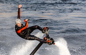 Гидрофлайт – новейшая водно-моторная дисциплина, где спортсмен при помощи специального оборудования, подключенного к аквабайку, движется над поверхностью водоема.