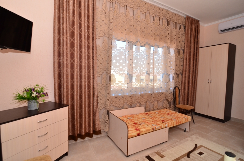В этом райском уголке, всего в нескольких минутах ходьбы от пляжа находится гостевой дом «Александрия», где Вы можете снять уютные номера и отлично провести летний отпуск. В каждом номере Вы найдете удобную мебель, телевизор, холодильник, кондиционер, посуду. Из номеров гостевого дома есть выход на балкон, откуда можно полюбоваться красивыми пейзажами и подышать свежим морским воздухом.