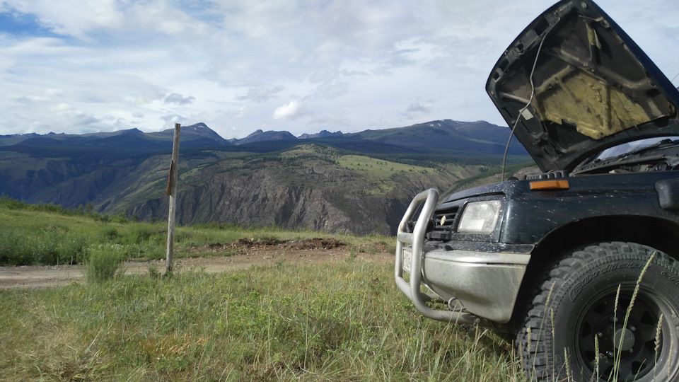 13. Поднимаясь в перевал Кату-Ярык, я заметил, что машина начала вести как-то не так. Пропала тяга и был риск не заехать в перевал вообще. с горем пополам мы заехали на вершину и встали на перекус. Заодно дал машине отдохнуть