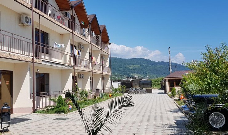 Ну что сказать, для Гудауты отель шикарный. Из плюсов, чисто, приятно находится на территории, пальмы, лавочки, все аккуратно, очень близко до моря, 2 минуты идти. У нас был оплачен завтрак и ужин. Завтраки однообразные, каждый день одно и то же, каши, огурцы,помидоры, 2 вида колбасы, 1 вид сыра, блинчики, яичница была 1 раз за 5 дней, кофе пеле, чай тоже не пойми что, ужин тоже очень посредственный, салаты, макароны и котлеты, жить можно, но с таким меню. не долго))) За 5 дней в номерах не разу уборка не производилась, тв показывает 5 каналов, из них только 1 трансилируется с нормальной картинкой, остальные 4 канала практически не показывают. Близ отеля есть типа кафешки, будки металические, где что то, как то готовят, кстати вкусно готовят, но в антисанитарии подхватила ротовирусную инфекцию там. На пляже есть лежаки, людей очень мало, но много дружелюбных собак и коров. В общем итог такой, сам отель норм так, но всё что рядом. дыра-дырой, вечером даже прогуляться негде. Огромный плюс, в сезон на пляже можно с комфортом расположиться, людей ну очень мало, по сравнению с нашими пляжами.