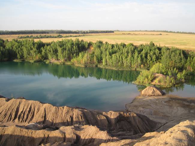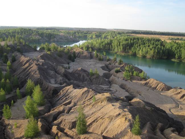 Когда-то там добывали уголь. Со временем отвалы превратились в живописные холмы, а ямы в голубые озера.