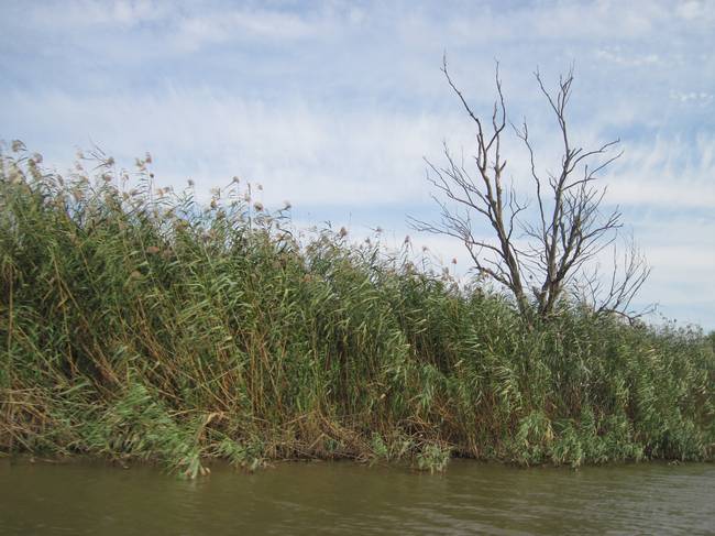 Около часа мы ехали по широким и узким протокам. Это было удивительное зрелище. Мы видели только воду, камыши и небо. И только иногда землю.
