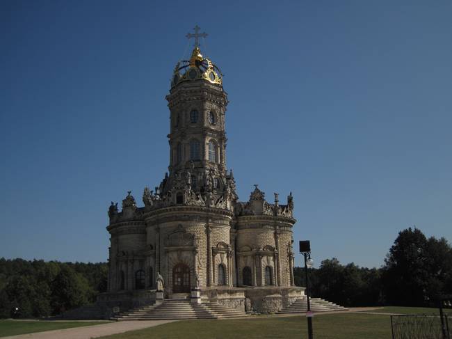 Выехали в 10.30. Наша первая остановка и достопримечательность - Дубровицы. Это усадьба фаворита Екатерины Мамонова-Дмитриева. Но главное там не дом, а церковь. Она построена Борисом Голицыным, воспитателем Петра. Храм настолько необычен для православия, что в начале его даже не хотели освящать.