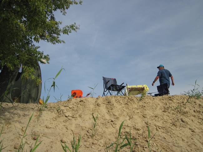 Если ехать по трасе Дон, то, не доезжая моста через Оку, можно свернуть направо на Сайгатово. Мы проехали км 4 и оказались на песчаных пляжах. Там стояло довольно много машин, хотя был понедельник, но и мест было немало. Мы раскинули свой первый лагерь и пошли купаться. Чудесное место! Теплая и чистая вода. Что ещё надо для начала путешествия!