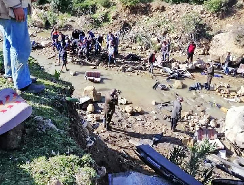Поделитесь этой новостьюКак сообщает радиостанция Shems FM, транспортное средство с 56 пассажирами, направлялось из района Амдум в Айн Драхм. Автобус вылетел с дороги и упал с обрыва с высоты более 50 метров.
