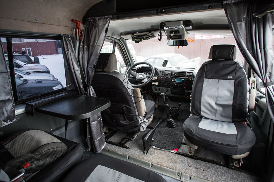 Еще один Соболь попал и ко мне в журнал. Это грузопассажирская модель, точно такая же как у меня, с высокой крышей, поэтому мне особенно интересно было рассматривать, как внутри все сделано и как что расположено в салоне.