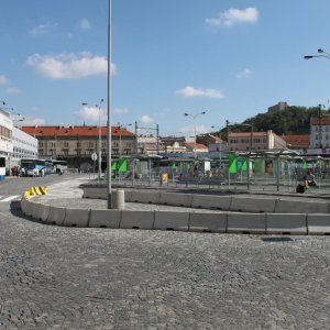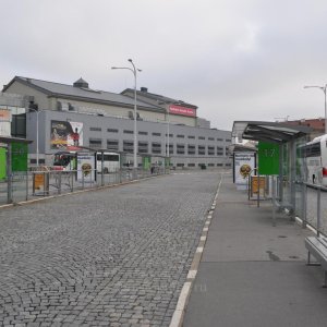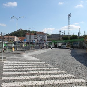 Выглядят платформы очень просто, и вы всегда сможете легко разобраться в расписании всех уезжающих автобусов. Напротив находится всем известный пивоваренный завод Старопрамен. Тут же находится пивной ресторан На верандах, где вы сможете всегда отдохнуть в ожидании вашего автобуса.