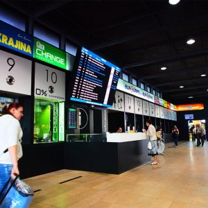 - Вторая — старый корпус. В старой части автовокзала расположены несколько касс, кофейня, супермаркет, камера хранения и пункт обмена валют. Зал ожидания в старом корпусе тоже есть (на втором этаже), но ожидать свой рейс там могут только пассажиры перевозчика Student Agency.