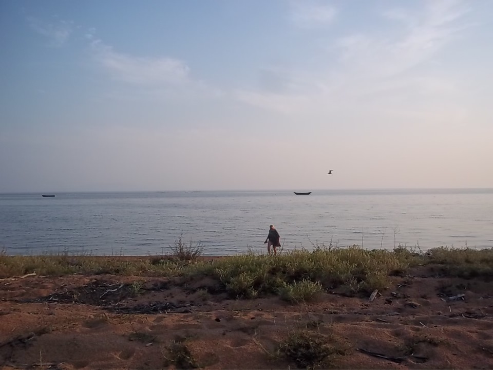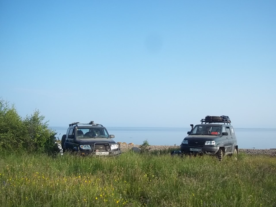 Немного побродили, поговорили с людьми… Да, очень теплое, безветренное и красивое место! Но, для рыбаков, или для тех, у кого есть лодки или деньги – чтобы отсюда плавать к интересным местам. Не понравился заросший травой берег и огромные комары! Даааа, разбалованы мы Горным Алтаем, где можно не закрывать окна палатки и сидеть на берегу вечером в трусах… Наверное мы даже и остались бы там на денек для пробы, но на наше решение повлиял прогноз погоды – обещали дождь. А я уже точно знал, что если грунт намочит хоть немного – я уже отсюда назад не выберусь (передний привод, груженная машина). И мы, посовещавшись, решили возвращаться в Безымянную бухту – так сказать на "морской берег".