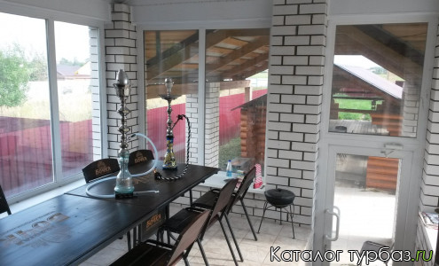 К услугам гостей предлагаются коттедж со спальными местами и банкетным залом, веранда, баня. Территория комплекса огорожена забором. Просторный внутренний двор с зеленым газоном позволяет организовывать мероприятия на открытом воздухе.