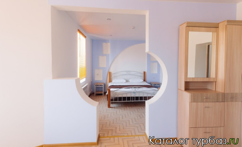 Номер категории Стандарт+ на 2-4 места: 2-х спальная кровать, раскладное кресло-кровать, шкаф, стол, зеркало, телевизор, Wi-Fi, санузел (туалет, умывальник, душ), туалетные принадлежности, тапочки, полотенца, постельное белье, обогреватели.