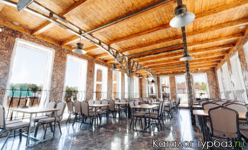 На территории комплекса работает кафе с банкетным залом на 80 мест. Кафе предлагает трехразовое питание и организацию банкетов.