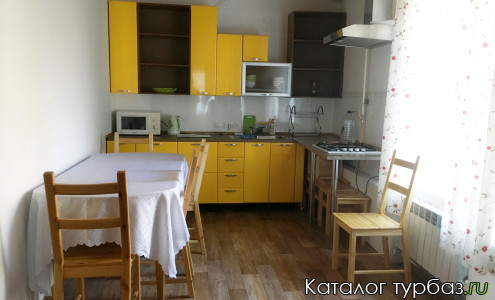 На первом этаже два 4-х местных номера. Кухня, гостиная, две спальни.