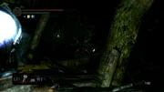 Спустившись вниз, вы можете найти светлый сундук. Подойдите к нему, ударьте, чтобы открыть. Сундук превратится в монстра. Ходите вокруг него, опасайтесь ударов ногой с разворота, которые могут причинить вам серьёзный урон. Уничтожив врага, вы сможете забрать предмет, который хранился в сундуке – глубинную секиру. Вернитесь наверх и покиньте башню через другую металлическую решётку. Убив нежить, вы увидите впереди большого рыцаря в доспехах. За один атакующий выпад тот размахивает трижды своим длинным мечом. Уклоняйтесь в это время, после чего атакуйте врага любым оружием, которое у вас имеется. В принципе, ничего сложного.