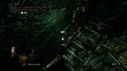 Можно убить его еще одним способом, правда, ценой собственной жизни. Справа от лестницы, ведущей к рыцарю, есть узкая дорога, оканчивающаяся обрывом. Обратив внимание рыцаря на себя, идем туда и спрыгиваем вниз - черный рыцарь, скорее всего, спрыгнет следом, и вы сразу получите дроп. Но при должной сноровке можно заставить его спрыгнуть, не умирая, вовремя увернувшись от его атаки на краю или сделав ему удар в спину (он должен стоять лицом к обрыву).
