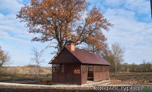 База отдыха на берегу рыболовных прудов за селом Сабурово Орловского района. База отдыха работает круглый год.