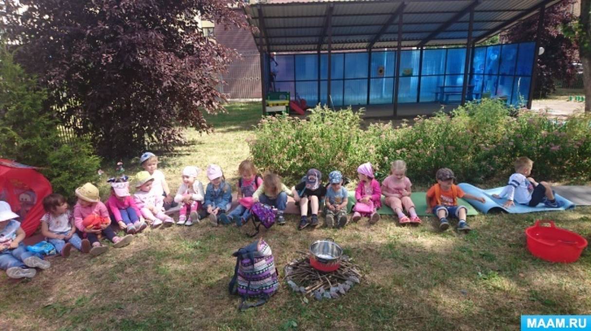 Цель: приобщение младших дошкольников к здоровому образу жизни посредством ознакомления с элементами туризма.