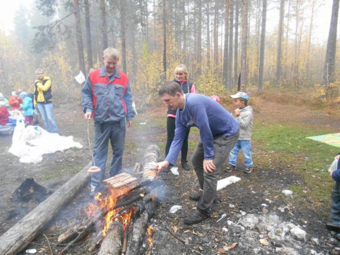 Дальше ребята по мостику проходят на полянку Лесовичка, разводят костёр с родителями, участвуют в конкурсе «На самый оригинальный бутерброд! и т. д.