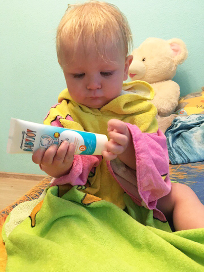 «Крем мне самой тоже очень понравился, пахнет обалденно, легко и свеженько. Впитывается достаточно быстро, мягкий и приятный. Так как у сына лезут зубы, то от слюней на подбородке есть раздражение, но крем с ним неплохо справляется».