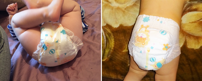 «Сами подгузники очень нежные, приятные на ощупь. Оснащены пупырышками (как в дорогих японских), имеют глубокие боковые стенки, которые обеспечивают защиту от протеканий, резиночку на спинке, многоразовые застежки (когда ребенок убегает — это тоже важный фактор). Ночь тоже выдержали отлично, покраснений и раздражений не было».