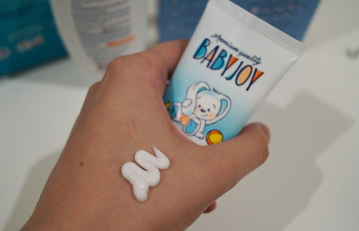 «Подгузники BABYJOY нам очень нравятся! Они тонкие, нежные и мягкие, сидят идеально (ребенок весит около 10 кг), не протекают. На внутренней поверхности подгузника — супер впитывающие подушечки — просто отлично впитывают, и кожа ребенка сухая, не раздражается. Запах нейтральный, с нежными нотками ромашки. Чувствуется, что ребенку в них комфортно. Мы с детьми попробовали много разных подгузников и, хочу отметить, что в BABYJOY сочетается всё самое лучшее, это достойные подгузники премиального качества. Спасибо, что вы нам их открыли, и цена радует».