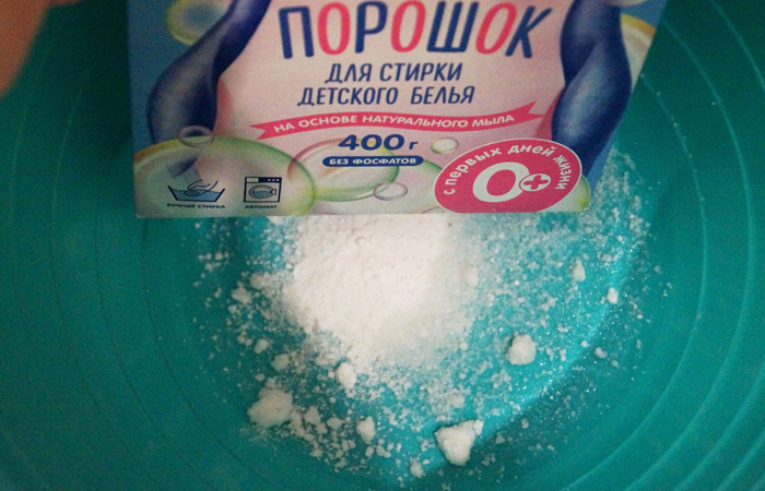 «Со своей задачей справляется, аллергию не вызывает, выполаскивается без доп.полоскания (машинная стирка 40 градусов). Минус: следы „детской неожиданности“ без замачивания, при стирке с первого раза не удаляются (но пока ни один детский порошок у меня с этим не справлялся), коробка неудобно открывается».