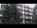Некоторые номера выходят окнами на стену соседнего корпуса, непрезентабельный вид компенсирует рядом растущая зеленая аллея, наделяющая по утрам воздух дурманящим ароматом хвои.