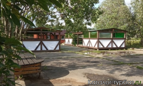 На территории есть одноэтажный таунхаус на 10 номеров. Каждый номер площадью 35 квадратных метров. Расположиться здесь могут только два-три человека, да и то третьему придется спать на раскладушке. Стоимость размещения за двоих в будний день — 2200 рублей. В выходные — 3800 рублей.