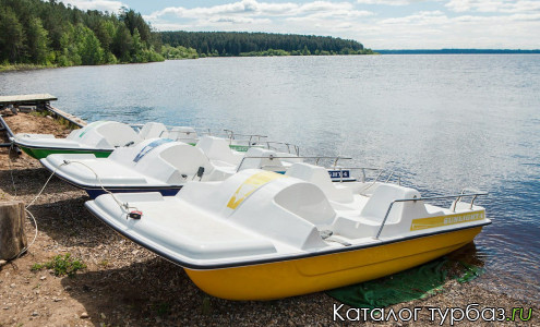 В аренду здесь можно взять спиннинг для рыбалки за 250 рублей в сутки, пластиковую весельную лодку — 250 рублей в час. Можно покататься и на моторной лодке — стоит это 1000 рублей за 2 часа.