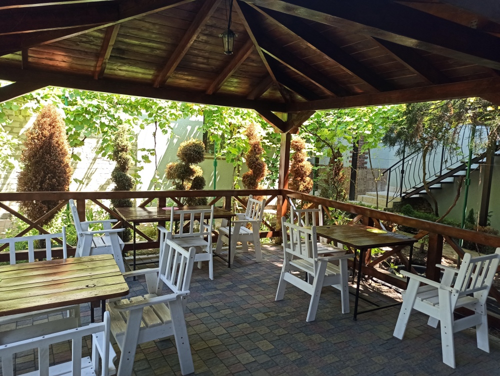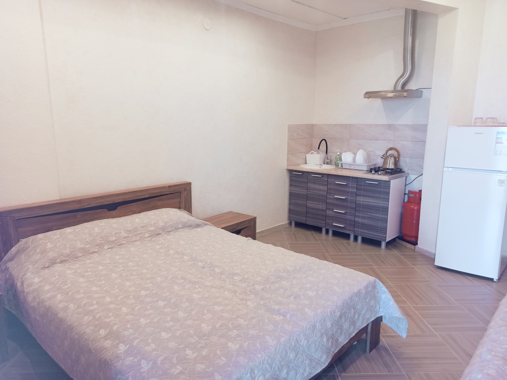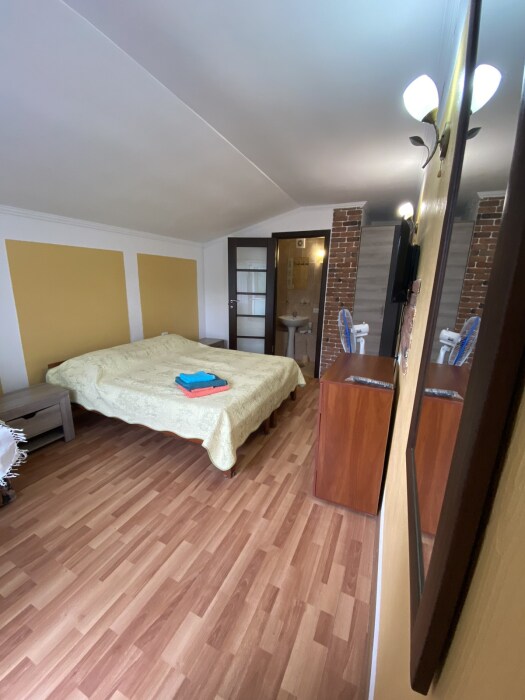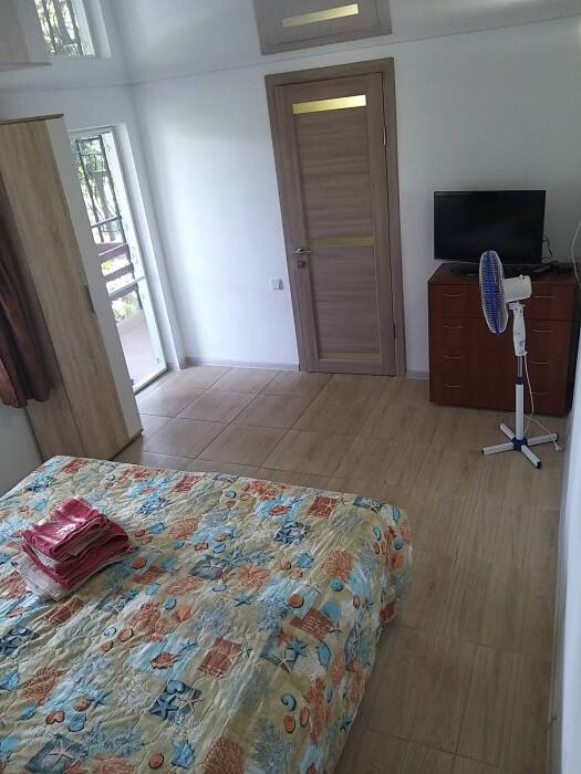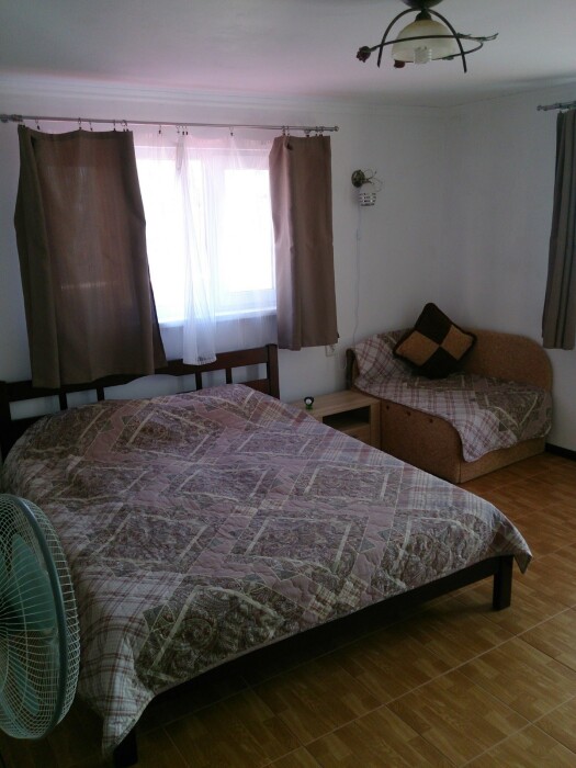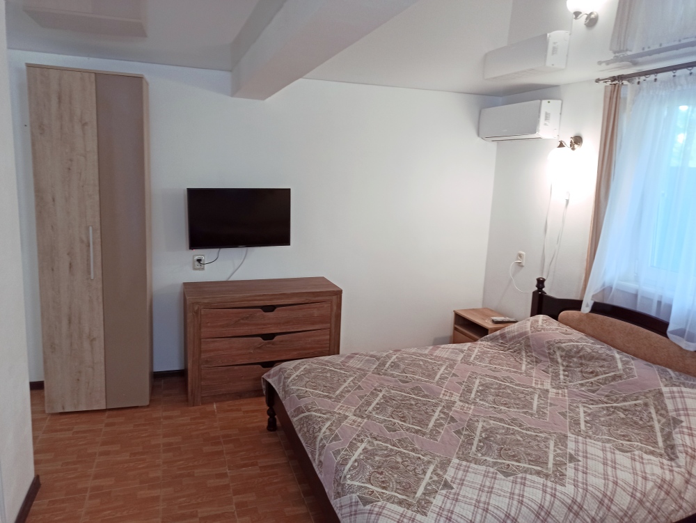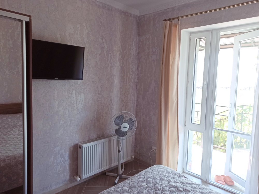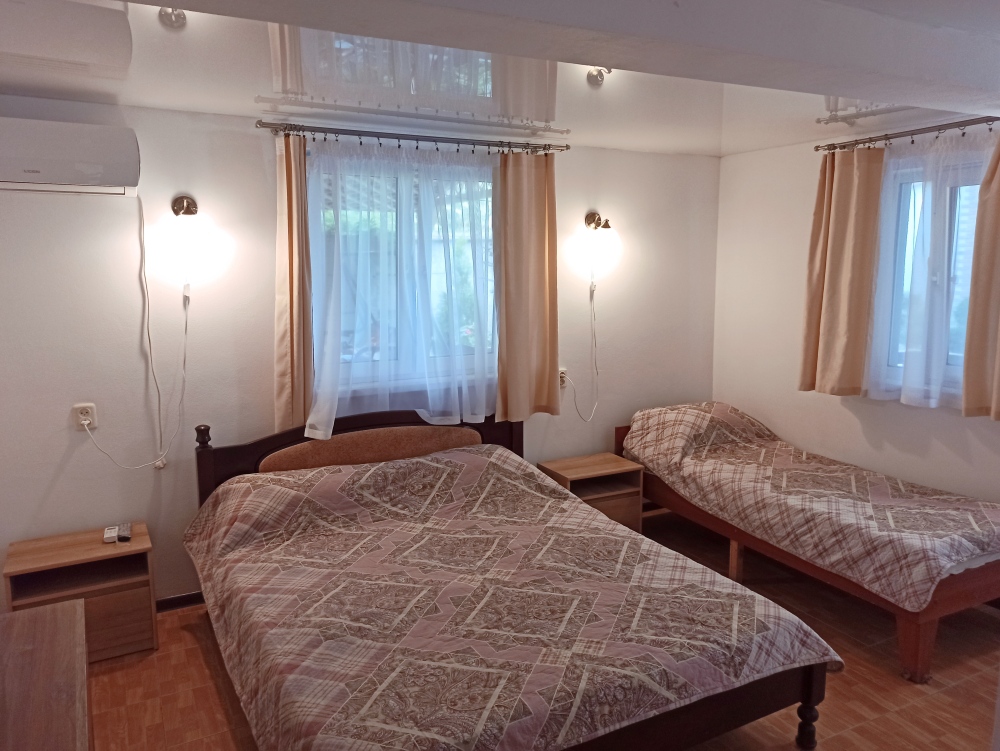 Мини-гостиница располагает 10-ю комфортабельными чистыми номерами с балконом класса люкс с удобствами внутри, оснащенными необходимой мебелью и кондиционером. Комнаты рассчитаны на 3 места + одно дополнительное по необходимости. Основным достоинством номеров мини-гостиницы- изумительный вид на море и вулкан Кара-Даг. До пляжа 5-7 минут ходьбы.
