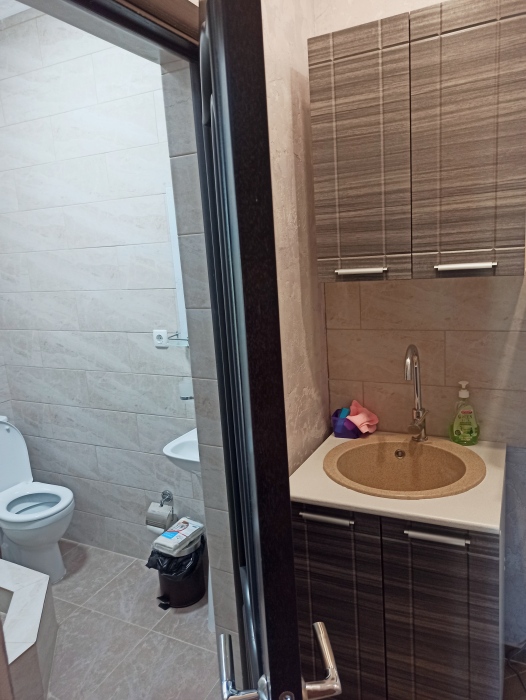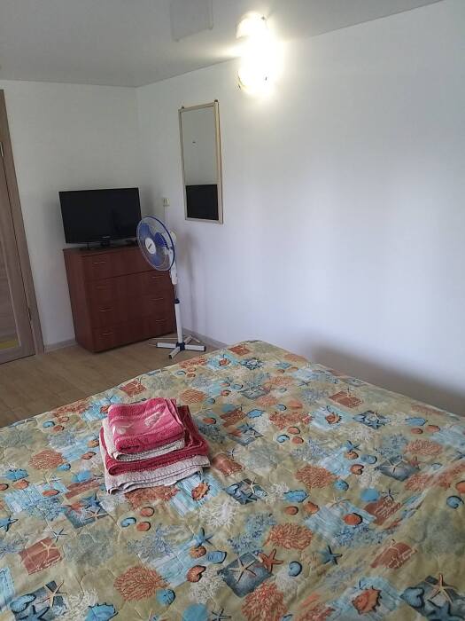 Квартира 2-х комнатная, комнаты раздельные, санузел раздельный, большая застекленная лоджия, вода холодная и горячая постоянно, греется котлом, все удобства. Есть вся необходимая техника, 2 кондиционера, в комнатах, микроволновка, эл.чайник, посудомойка, холодильник, 3 телевизора, Wi-Fi. Во всей квартире на полу ламинат, ковров нет.