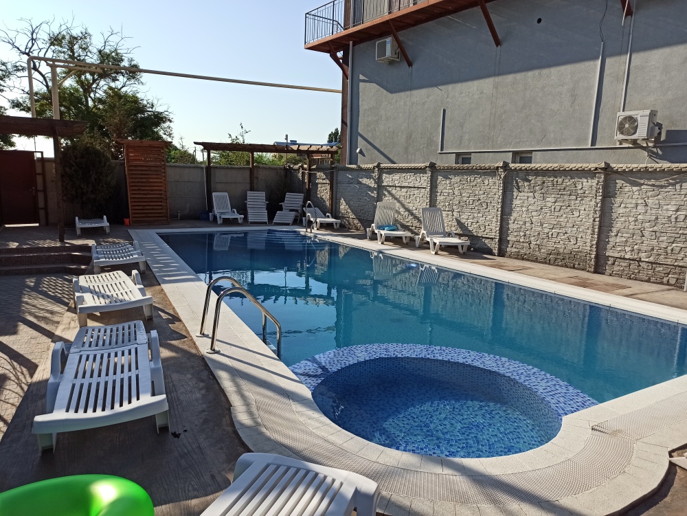 На территории также имеется мангал для общего пользования. На закрытой благоустроенной территории находится игровая комната с бильярдом, дартс, детским и взрослым настольным футболом, фортепиано, а также отдельная комната с настольным теннисом. Наш бассейн имеет размер 10,5х4х1,5 метра, в нём есть подогрев воды и вечернее освещение. Все перечисленные услуги, а также Wi-Fi у нас бесплатные.