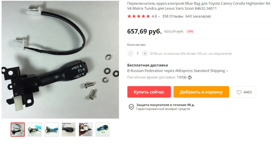 Все комплектующие по закупке для установки круиз-контроля сводятся к :
