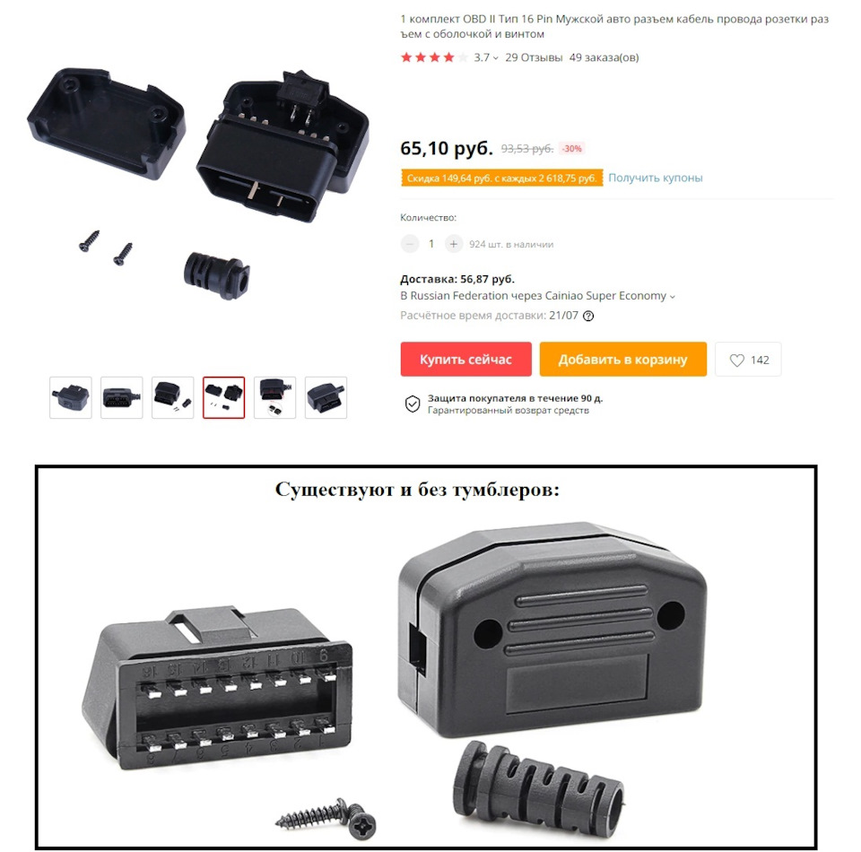 Можно произвести врезку в CAN шину и врезку по питанию по месту, а можно обеспечить подключение в фишку OBD. Я применил вариант с фишкой OBD что у меня имелась в запасе, но вполне можно применить и фишки с корпусом из Китая: