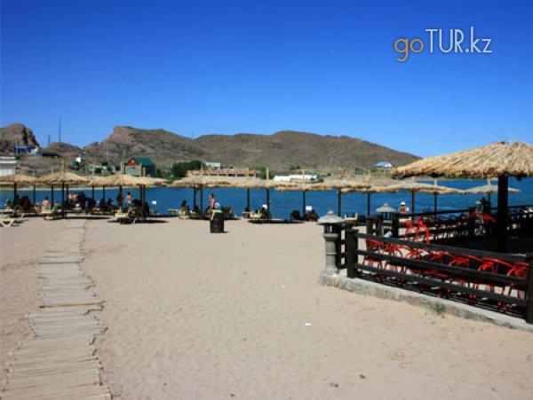 Дикий пляж с песчаным и пологим берегом. Хорошо подойдет для семейных поездок, так как у берега мелководье. Чтобы добраться до глубины, придется идти около 50 метров от берега, что является преимуществом для отдыха с детьми. Аренда навесов — 2000 тенге.
