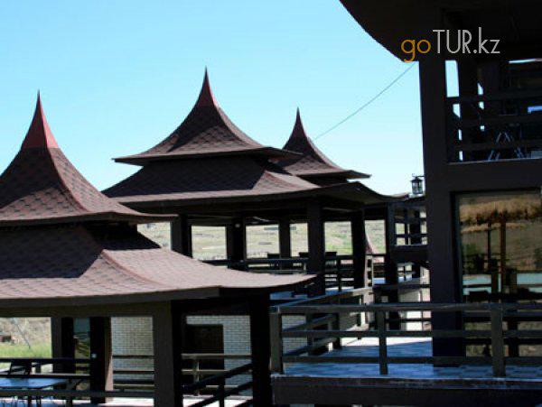 Также в 2-х этажных котетджах (6 котетджей) с открытой терассой на втором этаже с видом на Капчагайское водохранилище.