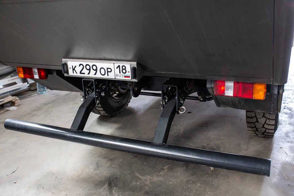 Он может быть установлен в двух положениях: городской вариант, когда он служит противопоткатным брусом и внедорожный.