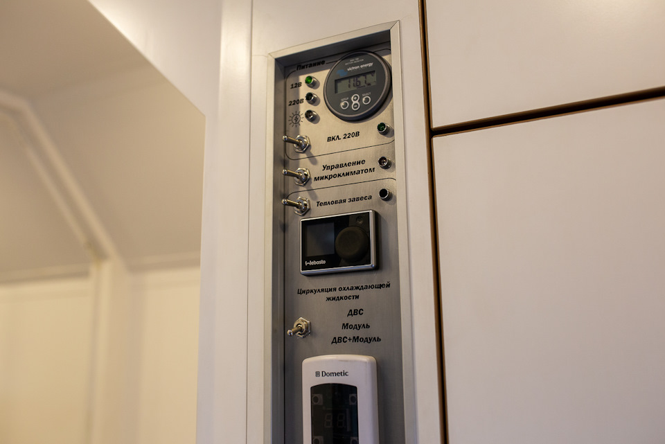 Абсолютный комфорт – лучшая характеристика нашего автомобиля. Заботясь о вашем здоровье, мы отдали предпочтение водяной системе отопления модуля, а также оснастили модуль системой «умный дом», включающую в себя централизованное управление освещением, отопление, в том числе теплым полом.
