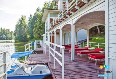 Прогулки по настоящему сказочному лесу с мохнатыми елями и вековыми соснами дадут долгожданное умиротворение, а на зеркальном озере прекрасные лебеди будут рады общению с Вами. Бар с биллиардом и дровяным камином создаст уютную атмосферу в тихие зимние вечера, а Голубая гостиная предложит праздничные программы в сопровождении живой музыки.