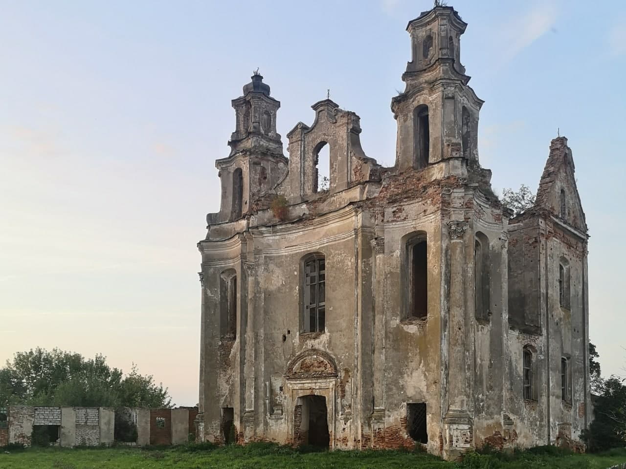 Очень классные руины костела – спокойно можно зайти внутрь и все посмотреть. Там нет крыши, но сохранился весь каркас здания, колонны и стены – правда, в плохом состоянии.