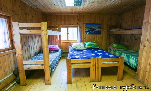 Внутри: баня, кухня-столовая, гостиная с двуспальным диваном, спальня 1 (6 односпальных кроватей, постельное белье и полотенца для каждого гостя), спальня 2 (2 односпальных кровати, 2 2-ярусных кровати, постельное белье и полотенца для каждого гостя), микроволновая печь, холодильник, плита с духовкой, обеденный стол, телевизор, туалет. Душ с горячей и холодной водой в отдельном помещении.