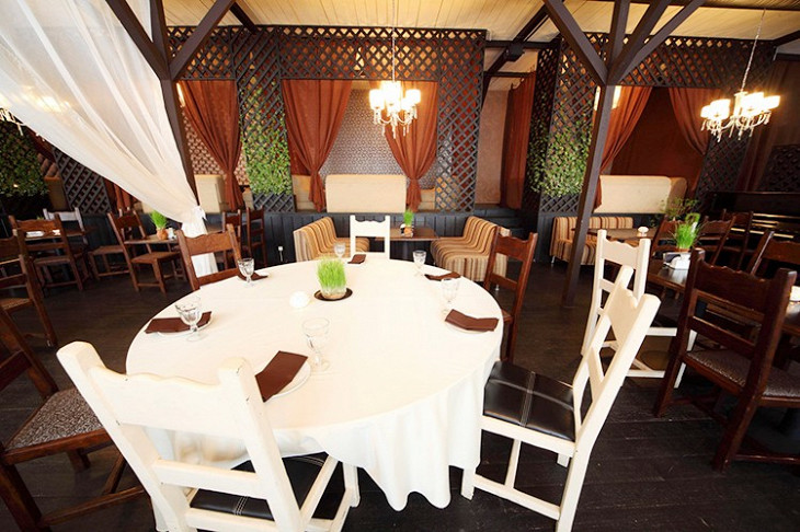 Советую выбирать столик на террасе – и романтический ужин вам обеспечен. Цены здесь чуть выше среднего, но порции большие и очень сытные. По вечерам в ресторане живая музыка. Все блюда готовят из свежих продуктов. Рекомендуем попробовать здесь баклажаны с орехами, телятину с аджикой, цыпленок в ткемали – все эти блюда отменного качества.